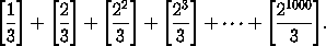 Поэтому при замене каждых двух последовательных членов нашей геометрической прогрессии целыми частями сумма уменьшается на 1, а так как в сумме всего 1000 слагаемых, то при замене целыми частями их всех она уменьшится на 500.