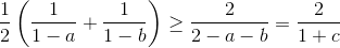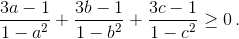 Поскольку сумма числителей равна 0, неравенство будет доказано, если мы заменим знаменатели на равные таким образом, что каждая дробь при этом не увеличится. Если a ≥ b ≥ ⅓ ≥ c, то заменим все знаменатели на 1 – c², в результате отрицательное слагаемое не изменится, а положительные не увеличатся. Если a ≥ ⅓ b ≥ c, то заменим все знаменатели на 1 – b², тогда положительное слагаемое и одно из отрицательных только уменьшатся, а второе отрицательное слагаемое останется неизменным.