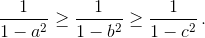Решение 2: Не умаляя общности, можно считать, что a ≥ b ≥ c, тогда 1 – c² ≥ 1 – b² ≥ 1 – a² и, следовательно,