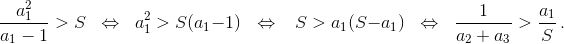Сумма чисел a1, a2, a3, каждое из которых больше единицы, равна S, причём