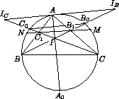 Проведём через A прямую, параллельную B0C0, пересекающую биссектрисы в точках IB и IC (см. рис.).