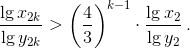 При достаточно большом k правая часть последнего неравенства больше 1, а значит, x2k > y2k.