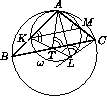 Дан треугольник ABC. Окружность ω касается описанной окружности Ω треугольника ABC в точке A, пересекает сторону AB в точке K, а также пересекает сторону BC. Касательная CL к окружности ω такова, что отрезок KL пересекает сторону BC в точке T. Докажите, что отрезок BT равен по длине касательной, проведённой из точки B к ω.
