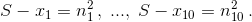 Обозначим искомые числа и их сумму соответственно через x1, ..., x10 и S. Тогда