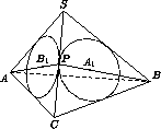 ребре AB , т.е. точки S , C и центры вписанных окружностей Δ ASB и Δ ACB лежат в одной плоскости. Отсюда следует, что отрезки, соединяющие