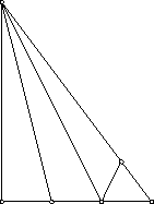 Ответ: да. Например, можно склеить тетраэдр из развертки, показанной на рис.10.5 (меньший катет разделен на три равные части, а гипотенуза в отношении4:1). Нетрудно убедиться, что каждый из трех углов, на которые делится меньший угол треугольника, меньше суммы двух других; следовательно, из такой развертки, действительно, можно склеить тетраэдр.