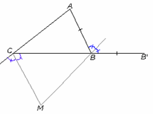 На продолжении стороны BC треугольника ABC за вершину B отложен отрезок BB', равный стороне AB. Биссектрисы внешних углов при вершинах B и C пересекаются в точке M. Докажите, что точки A, B', C и M лежат на одной окружности.