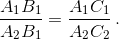 Обозначим Сi (i = 1, 2, 3, 4) основания перпендикуляров, опущенных из точек Аi на плоскость α (см. рис.). Прямоугольные треугольники А1С1В1 и А2С2В1 подобны. Следовательно,