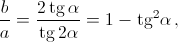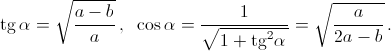 a = 2nR tg 2α, b = 4nR tg α, x = 4nR sin α = b cos α.