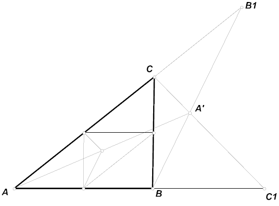 Действительно, так как треугольники BCB1 и CBC1 равнобедренные, прямые BB1 и CC1 параллельны биссектрисам углов C и B . Поэтому при гомотетии с центром A и коэффициентом1/2эти прямые перейдут в биссектрисы углов серединного треугольника, а точка A' — в искомый центр.