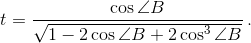 получаем sin²∠A cos²∠B = sin²∠B (1 – cos∠B)²t², или (1 – t² cos²∠B) cos²∠B = (1 – cos²∠B)(1 – cos∠B)²t², откуда