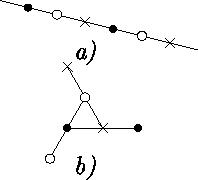 Рассмотрим треугольник ABC наименьшей площади, у которого все три вершины одноцветны (пусть они синие; см. рис.). Тогда внутри него нет синих точек. На каждой из его сторон BC , AC , AB есть по точке другого цвета (обозначим их A1 , B1 , C1 соответственно). Если все они одноцветны, то образовался одноцветный треугольник меньшей площади, что невозможно. Поэтому можно без ограничения общности считать, что A1 и C1 – желтые, а B1 – зеленая.