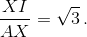 Пусть отрезки XY и AI пересекаются в точке S. Как известно, KI = KA (см. задачу 153119), то есть высота KT треугольника AKI является его медианой. Так как XY ⊥ AI, то XY || KT, а поскольку XY делит сторону AK пополам, то XY– средняя линия треугольника AKT. Значит, AS : ST = 1 : 3; при этом XS – высота прямоугольного треугольника AXI, откуда AS/ST = (AX/XI)²,