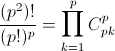а также некоторой перестановкой самих строк (всего p + 1 перестановка p объектов). В каждом классе эквивалентности (p!)p+1 таблиц. Поэтому (p²)! делится на (p!)p+1. Второй способ.