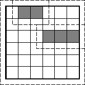 Ту же идею можно оформить иначе. А именно, заключим каждый корабль в прямоугольник, увеличив его на полклетки в каждую сторону. Такие прямоугольники не могут пересекаться и занимают всего 10+2·8+3·6+4·4=60 клеток. А если бы все корабли можно было разместить на доске 6×6, то все соответствующие прямоугольники располагались бы на доске 7×7, на которой имеется лишь 49<60 клеток. (Отметим, что каждая клетка этой новой доски содержит ровно один узел старой — поэтому вычисление и получается точно таким же, как в первом доказательстве.) Доказательство 2.Разрежем доску 6× 6 на 9 квадратов 2× 2. Каждый такой квадрат при расстановке по правилам может содержать клетки только одного корабля. Но всего кораблей 10, поэтому их на такой доске разместить нельзя. (Отметим, что это рассуждение доказывает, что на доску 6× 6 все 10 кораблей нельзя было бы поставить, даже если все они имели бы размеры 1× 1.)