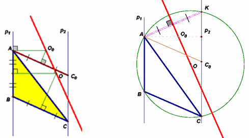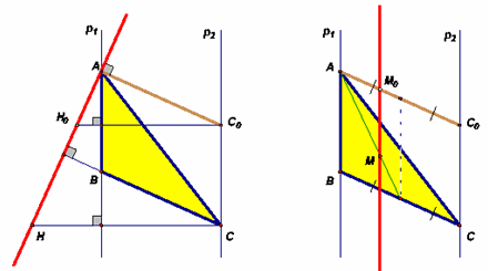 Имеются две параллельные прямые p1 и p2. Точки A и B лежат на p1, а C – на p2. Будем перемещать отрезок BC параллельно самому себе и рассмотрим все треугольники ABC, полученные таким образом. Найдите геометрическое место точек, являющихся в этих треугольниках: