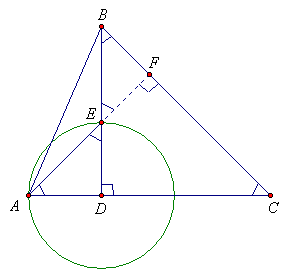 Для построения достаточно из точки D провести окружность с радиусом DA. Точка пересечения K с прямой BD и будет ортоцентром треугольника. Действительно, в равнобедренном прямоугольном треугольнике KDA ∠KAD = ∠AKD = 45°. Пусть L – точка пересечения AK и BD. Тогда ∠BKL =∠AKD = 45°, кроме того, по условию ∠CBD = 45°, следовательно, AL ⊥ BC. Заметим, что построение не зависит от того, является угол ABC острым, прямым или тупым.