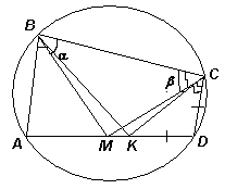 ∠CKM + ∠CBM = 180°. Значит, около четырёхугольника MKCВ можно описать окружность. Тогда ∠KBM = ∠KCM = β – α, значит,