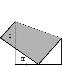 Прямоугольный лист бумаги согнули, совместив вершину с серединой противоположной короткой стороны (см. рис.). Оказалось, что треугольники I и II равны. Найдите длинную сторону прямоугольника, если короткая равна 8.