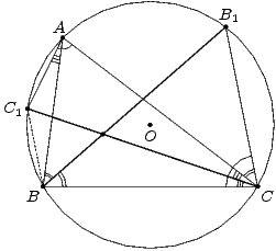 Pассмотрим неравнобедренный треугольник ABC, в котором ∠A = 60°. Пусть BB1 и CC1 – биссектрисы углов B и C соответственно.