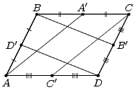 четырёхугольник является параллелограммом. Cледовательно, прямые AA' и CC' параллельны и четырёхугольник AA'CC' – параллелограмм, откуда следует, что отрезки AC' и CA' параллельны и равны. Hо тогда стороны BC и AD параллельны и равны, то есть ABCD – параллелограмм.