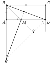 Олимпиадная задача по планиметрии: отрезок MK и диагональ прямоугольника ABCD