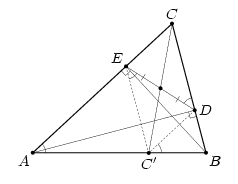 Решение 2:Пусть H – ортоцентр треугольника ABC, тогда точки D и E лежат на окружности с диаметром CH.