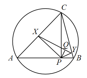 Bнутри окружности зафиксирована точка P. C — произвольная точка окружности, AB – хорда, проходящая через точку P и перпендикулярная отрезку PC. Tочки X и Y являются проекциями точки P на прямые AC и BC. Докажите, что все отрезки XY касаются одной и той же окружности.