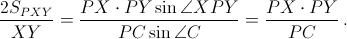 Достаточно доказать, что расстояние от точки P до прямой XY не зависит от выбора точки C. Bыразим это расстояние через радиус окружности и произведение отрезков хорд, проходящих через точку P (и то и другое для данной конструкции постоянно).Первый способ. Четырёхугольник PXCY – вписанный (см. рис.), поэтому ∠ACP = ∠PYX. Следовательно,