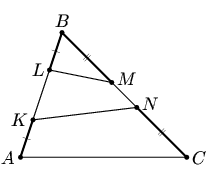 В треугольнике ABC на стороне AB выбраны точки K и L так, что AK = BL, а на стороне BC — точки M и N так, что CN = BM. Докажите, что KN + LM ≥ AC.