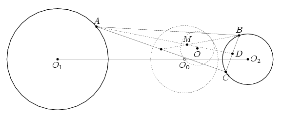 Геометрическое место центров тяжести треугольников на двух окружностях — олимпиадная задача Френкина Б. Р. (планиметрия, 10–11 класс)