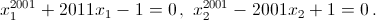 Решение 1:Пусть x1 > 0 – корень уравнения x2011 + 2011x – 1, а x2 > 0 – корень уравнения x2011 – 2011x + 1. Тогда