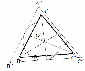 треугольника-проекции (см. рис. ж). Получим описанный около этого круга треугольник A''B''C'',