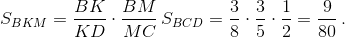 Следовательно, SCMKD = SBCD – SBKM = ½ – 9/80 = 31/80.