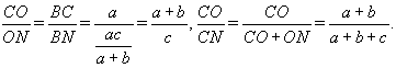 В треугольнике ABC известны стороны BC = a, AC = b, AB = c и площадь S. Биссектрисы BM и CN пересекаются в точке O. Найдите площадь треугольника BOC.