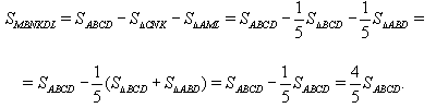 На сторонах AB, BC, CD и AD выпуклого четырёхугольника ABCD расположены точки M, N, K и L соответственно, причём AM : MB = 3 : 2, CN : NB = 2 : 3, CK = KD и AL : LD = 1 : 2. Найдите отношение площади шестиугольника MBNKDL к площади четырёхугольника ABCD.