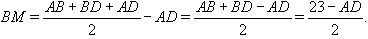 В треугольникеABCизвестно, чтоAB= 10,BC= 24, а медианаBDравна 13. Окружности, вписанные в треугольникиABDиBDCкасаются медианыBDв точкахMиNсоответственно. НайдитеMN.