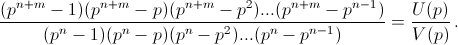 U(x) = (xn+m – 1)(xn+m–1 – 1)...(xm+1 – 1) делится на V(x) = (xn – 1)(xn–1 – 1)...(x – 1).