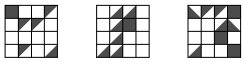 Из прозрачной пленки вырезаны три квадрата с узорами, нарисованными на них чёрной краской (см. рисунок).