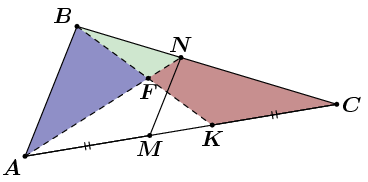 На сторонах AC и BC треугольника ABC выбраны точки M и N соответственно так, что MN || AB. На стороне AC отмечена точка K так, что CK = AM. Отрезки AN и BK пересекаются в точке F. Докажите, что площади треугольника ABF и четырёхугольника KFNC равны.