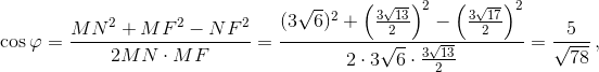 Рассмотрим треугольникMNF. Обозначим ∠NMF= φ. По теореме косинусов