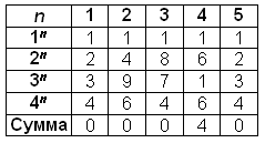 Решение 2: Составим таблицу значений последних цифр у каждого слагаемого и у суммы для нескольких начальных значений n.