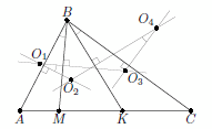 Докажите, что центры описанных окружностей треугольников ABM, ABK, CBM и CBK лежат на одной окружности.