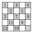 Приведём вначале пример маршрута мини-слона, который обеспечит посещение им двенадцати клеток (см. рис., числа от 1 до 12 показывают порядок обхода клеток).