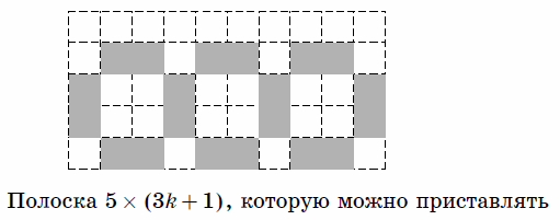 Если m и n дают остаток 1 при делении на 3, прямоугольники можно расположить так, как изображено на следующем рисунке.
