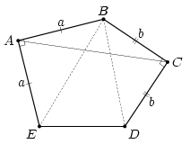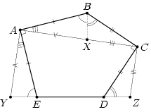 Олимпиадная задача по планиметрии с углами и равными сторонами в пятиугольнике