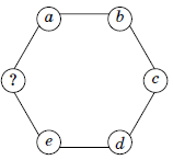 Раскрасим кружки, чередуя два цвета, белый и чёрный. Тогда каждый отрезок войдёт по одному разу в кружок каждого цвета, поэтому сумма чисел в белых кружках будет равна сумме чисел в чёрных кружках (каждая из них равна сумме всех чисел, которые были записаны на отрезках). Отсюда ясно, что стёртое число равно a + c + e – b – d).