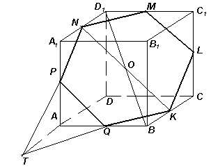 Пусть PQKLMN – сечение куба ABCDA1B1C1D1,
