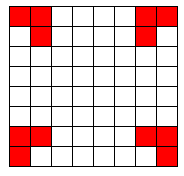 Первый способ. Чтобы побить выделенные на рис. слева 12 клеток необходимо, по крайней мере, 12 коней, так как никакие две клетки не могут быть побиты одним конем. Значит, среди них есть хотя бы одна клетка, которая не бьётся ни одним из 11 поставленных коней. На неё можно поставить ещё одного коня.