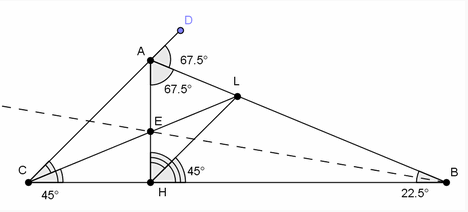 Докажем сначала, что AC || LH. Первый способ. Пусть DАB – внешний угол данного треугольника. Он равен 67,5° (см. рис.).